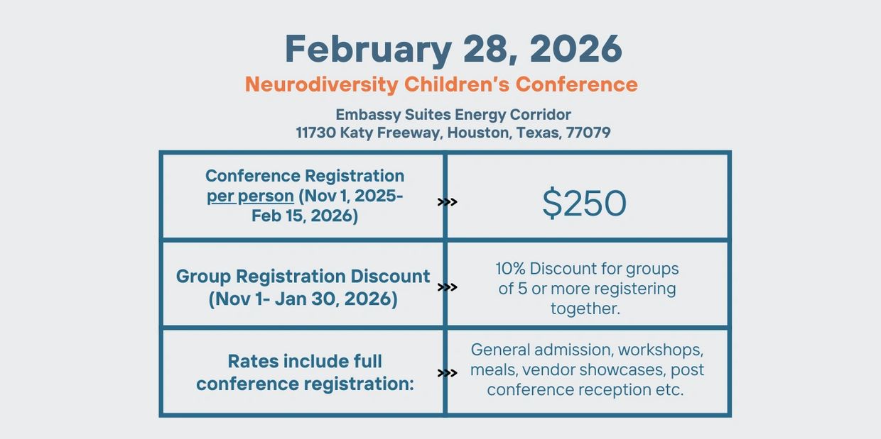 GROUP REGISTRATION: LAST DAY TO REGISTER FOR THE NEURODIVERSITY CHILDREN'S CONFERENCE IS JAN 30, 2026.